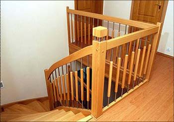 Die Geländerstäbe können aus Holz, Metall oder kombiniert gefertigt werden, der Handlauf aus Holz mit glattem oder Omegaprofil.